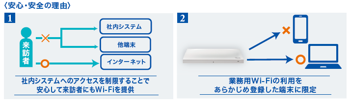 安定してWi-Fiを利用でき、かつ、顧客情報を多く扱うため安心・安全のWi-Fiである点が、